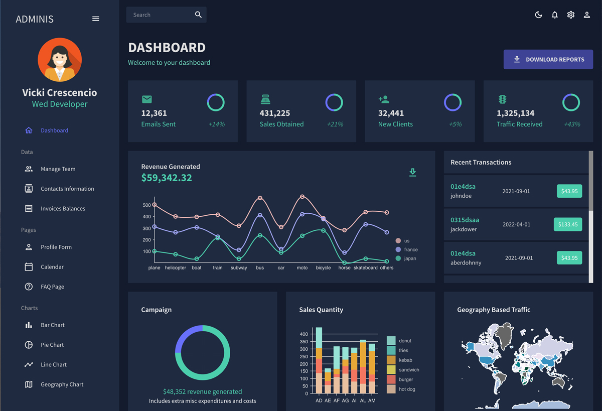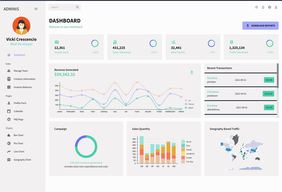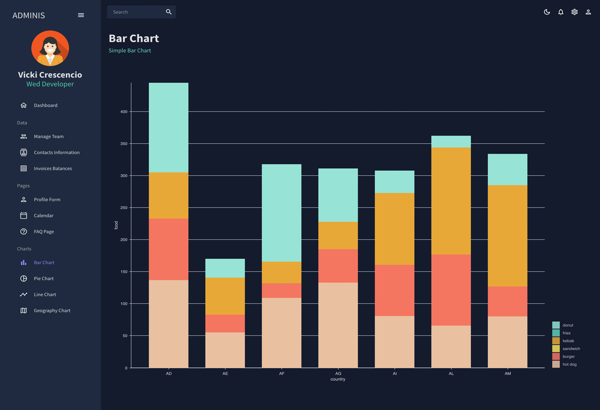 Check out the Code: https://github.com/vickicres/React-Admin-Dashboard